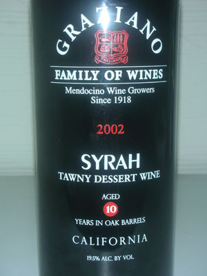Mendocino Wine Growers since 1918. Syrah-Tawny Desert Wine, aged 10yrs in oak barrels (2002)