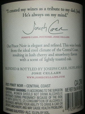 (2023) You too, may have noticed , that many of the pinots are proud wanting a few extra sheckles. I don't know , richer soil, rarer grape, better sun? Who knows? Back to the flavor, not bad....